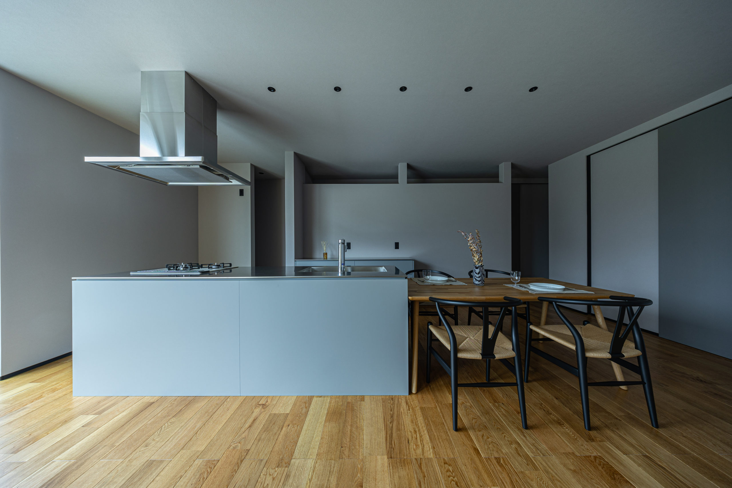 暮らしの中心となるキッチンには、グレートーンの統一感と「引き算の美学」を取り入れました。 流行を追うのではなく、本質的な美しさを追求したタイムレスなデザイン。生活感を抑えたシンプルな佇まいは、まさに「Less is More(少ないほうが、より豊か)」を体現しています。洗練された空間設計が、毎日の何気ない家事の時間さえも、特別なひとときへと変えてくれるはずです。